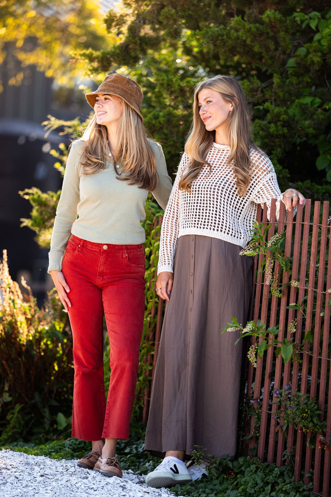On Amanda: KUT From The Kloth jeans in cinnamon, POLO Ralph Lauren green waffle shirt, POLO Ralph Lauren corduroy bucket hat.