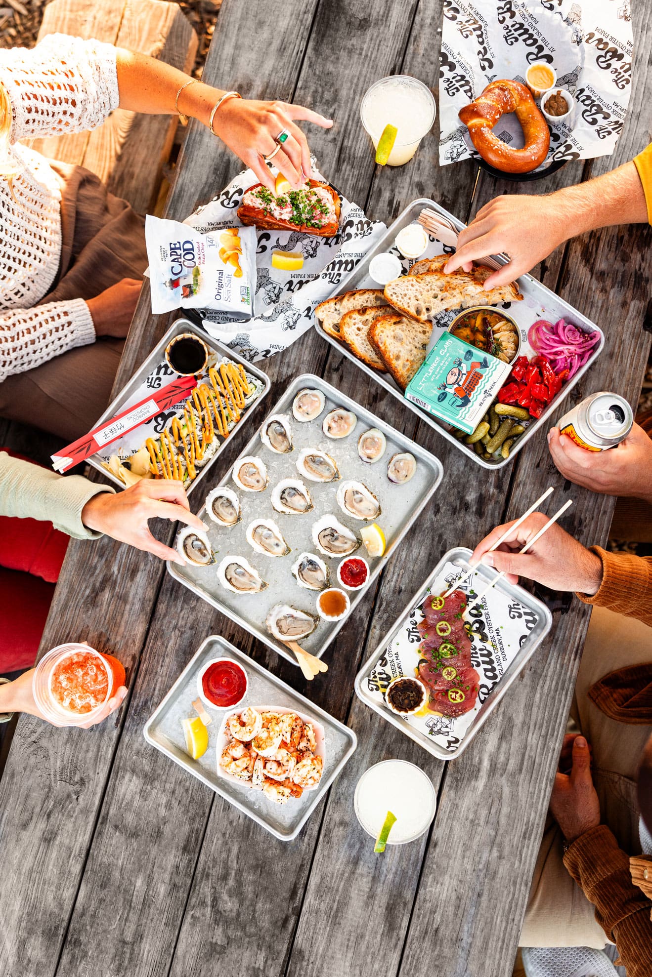 Oyster season has arrived on the South Shore and nowhere is it more joyfully celebrated than at The Raw Bar at Island Creek Oyster Farm in Duxbury. On a crisp fall Friday afternoon, trays of freshly shucked oysters and golden IPAs set the stage for a dining experience that is equal parts seafood feast and community gathering.